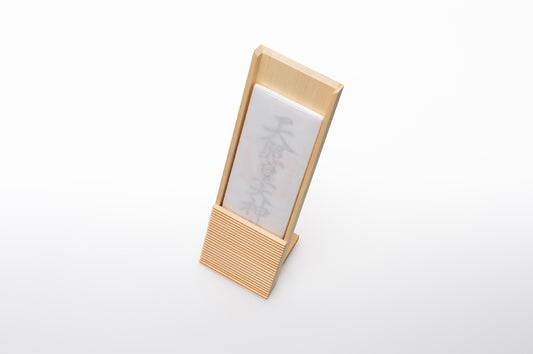 神宮司神棚舎の神棚には屋根がなく、いわゆる宮型ではありません。それは神棚の基礎知識を調べることで屋根が必要かどうかを客観的に判断した結果です。「神棚の本質を守りながら、生活習慣と住空間の変化に合わせて形を再考する。」それが今回のデザインの方法論です。造形は神社建築の様式の一部をクローズアップして再構築する手法をとり、「神棚」としての神聖さが損なわれないよう細心の注意が払われました。